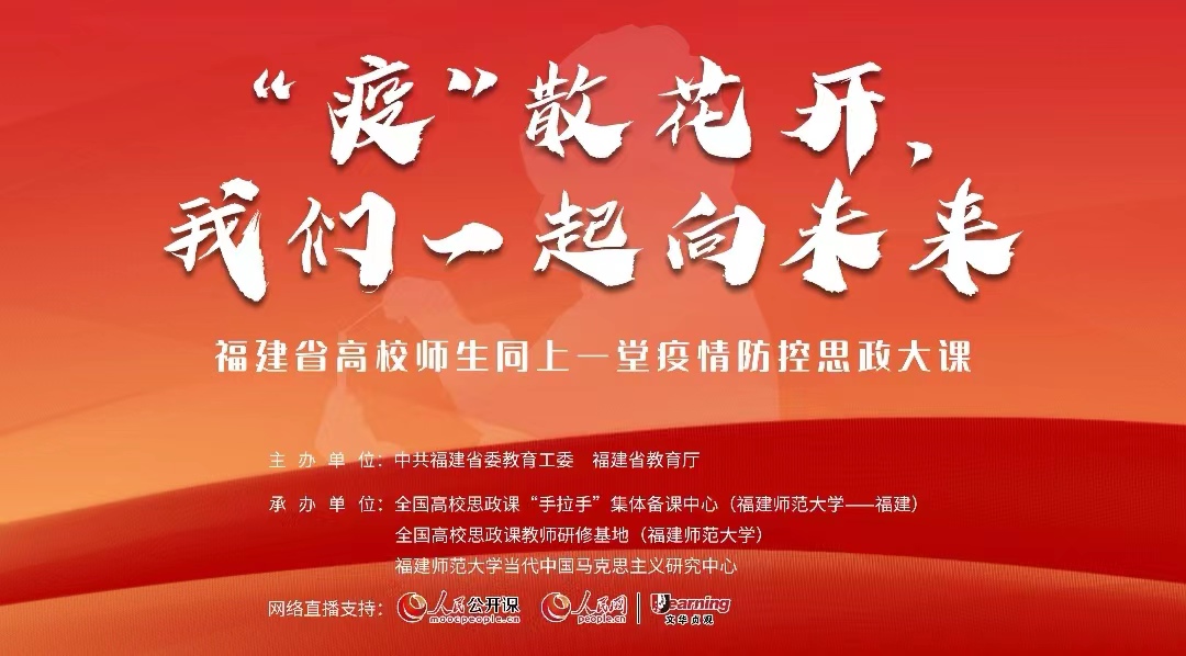 此次直播活动的主题为“‘疫’散花开,我们一起向未来”,分别由福建农林大学马克思主义公司副教授黄秀玲、厦门大学马克思主义公司教授石红梅、福建中医药大学马克思主义公司副教授陈韵、福州大学马克思主义公司副教授董海峰、闽江公司马克思主义公司副教授陈东五位老师主讲,并连线辛向阳、陈金龙、冯秀军三位专家进行互动,内容丰富。本次疫情防控思政大课紧密结合了高校思想政治理论课,讲述我省抗疫一线的感人故事,解读党中央关于疫情防控的决策部署,教育引导广大师生深刻认识中国特色社会主义制度的显著优势,牢记“两个确立”,增强“四个意识”,坚定“四个自信”,做到“两个维护”。