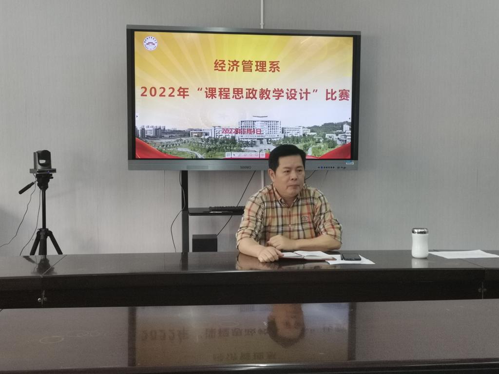 为深入贯彻落实中共中央办公厅、国务院办公厅《关于深化新时代公司思想政治理论课改革创新的若干意见》文件精神,根据《bw必威西汉姆联官方网站关于举办第一届课程思政教学设计大赛的通知》(漳城院办综〔2022〕10号)文件要求,进一步挖掘专业课程中蕴含的思政元素,5月4日下午,系主任张少华在系会议室主持经济管理系课程思政教学设计比赛,我系6名教师参赛。