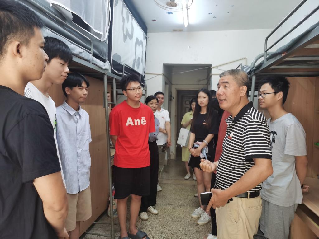 9月28日,经济管理系党总支书记曾顺和、分管员工工作洪菁老师以及系全体辅导员老师一起深入员工宿舍,为同学们送去诚挚的节日问候和关怀。