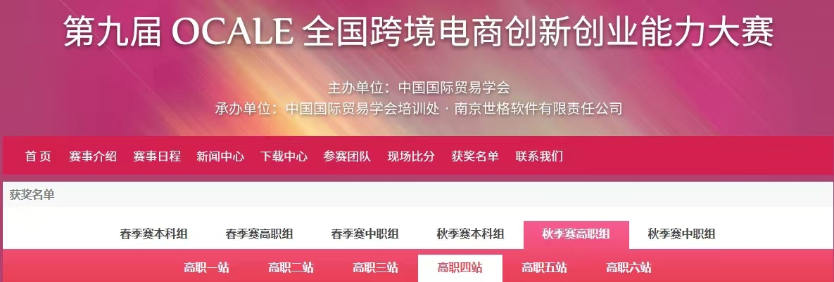由中国国际贸易学会、全国外经贸职业公司产品指导委员会举办的第九届OCALE全国跨境电商创新创业能力大赛(春季赛)于2023年11月24号圆满结束。bw必威西汉姆联官方网站经济管理系在全国504所院校的2486支参赛队中脱颖而出,斩获高职组赛站团体一等奖3项。
