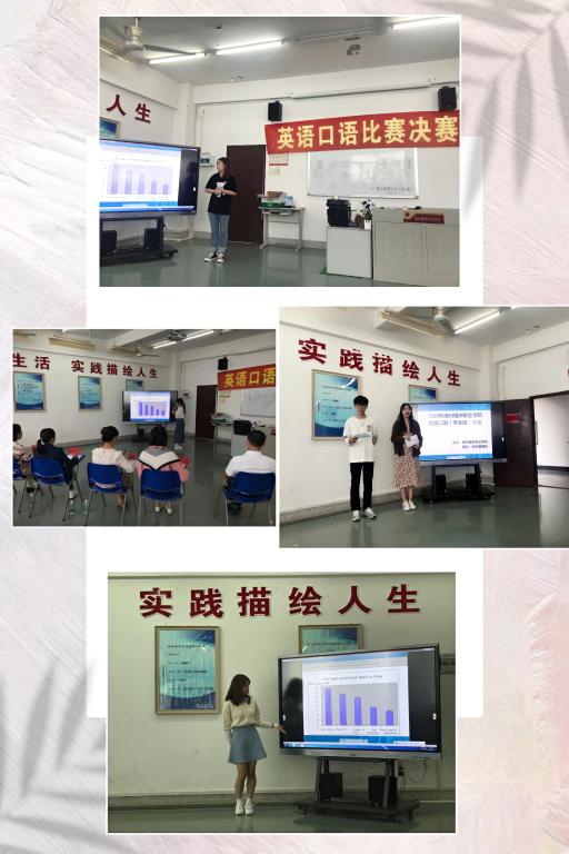 本次决赛分为两个环节,第一环节是职场描述,选手根据所给的图表进行描述、分析和总结;第二环节是情景交流,选手根据图表内容回答评委老师们提出的问题。选手们都为比赛做了精心准备,面对评委老师们的提问侃侃而谈,对答如流,赢得了在场同学们的掌声。经过激烈的角逐,最终2019级商务英语专业赖俊同学获得一等奖。