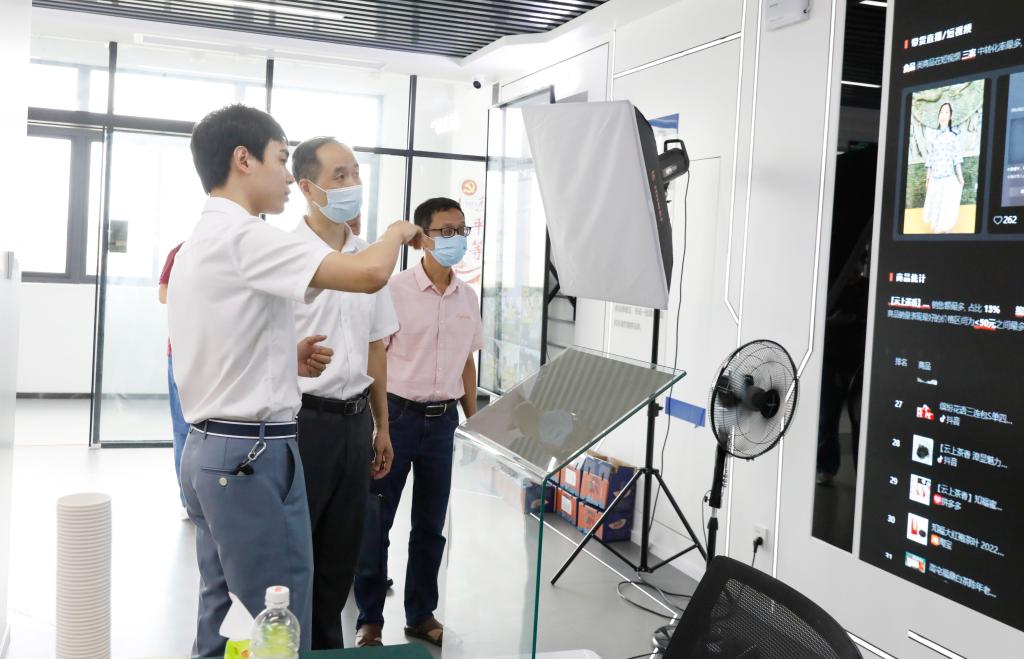 公司领导一行参观了跨境电商综试区展厅、跨境电商大数据运营中心、数字经济人才培训公司、跨境电商企业孵化区、直播电商基地等,详细了解园区企业经营、平台运营、人才需求、技能培训等方面情况。