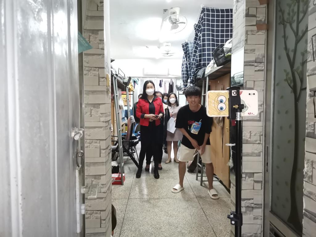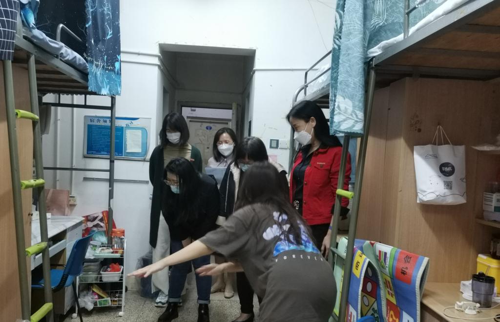 为做好公司封闭期间的员工宿舍管理工作,了解员工的急难愁盼问题,3月27日下午,经济管理系党总支书记林红、系副主任周晓红、分管员工工作的洪菁老师带领全系辅导员深入防控一线,走进员工宿舍,对系的疫情防控工作进行走访与指导。