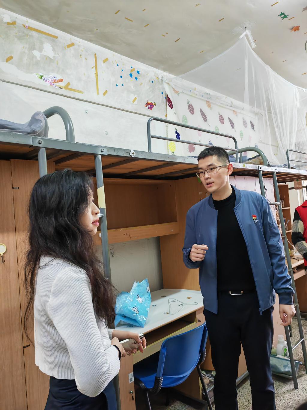 办公室、员工宿舍里,辅导员、班导师与返校学子亲切交流,详细了解员工近期的学习生活情况,叮嘱同学们返校后做好个人防护,保持健康的饮食和生活习惯,以饱满的精神、奋进的姿态投入新学期的学习和生活中。