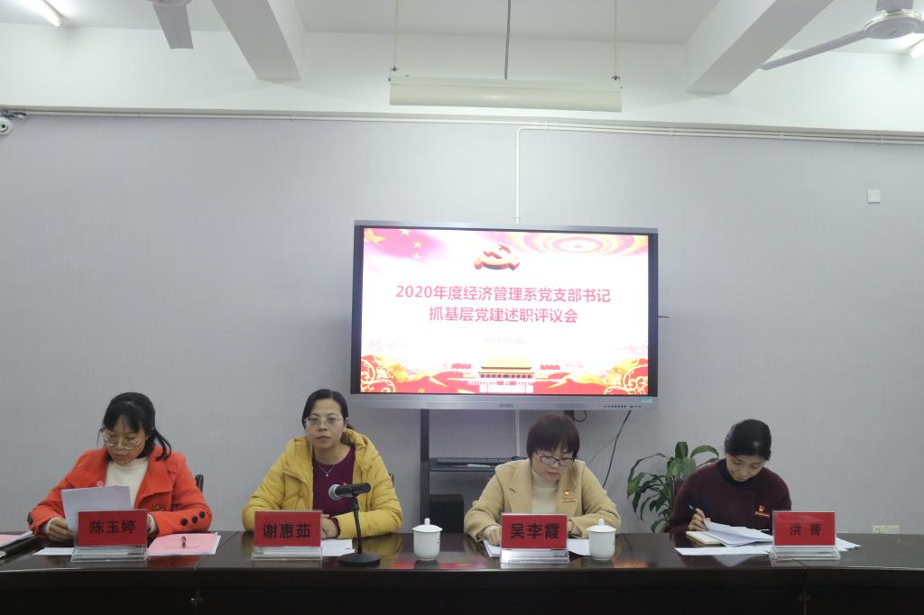 1月19日,经济管理系召开2020年度党支部书记抓党建工作述职评议会。系党总支委员、各支部委员参会。系主任张少华、党员代表、教师代表列席会议。