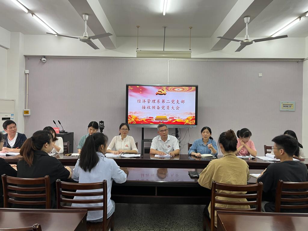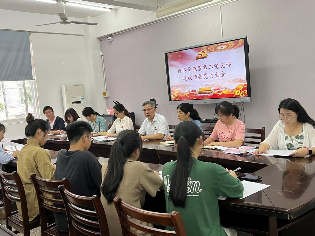 2022年6月17日下午,经济管理系第二党支部在系会议室召开接收预备党员大会。支部全体党员、员工发展对象参加会议,公司党委委员、组织部兼统战部部长刘展顺列席会议。会议由党支部书记王晓芳主持。