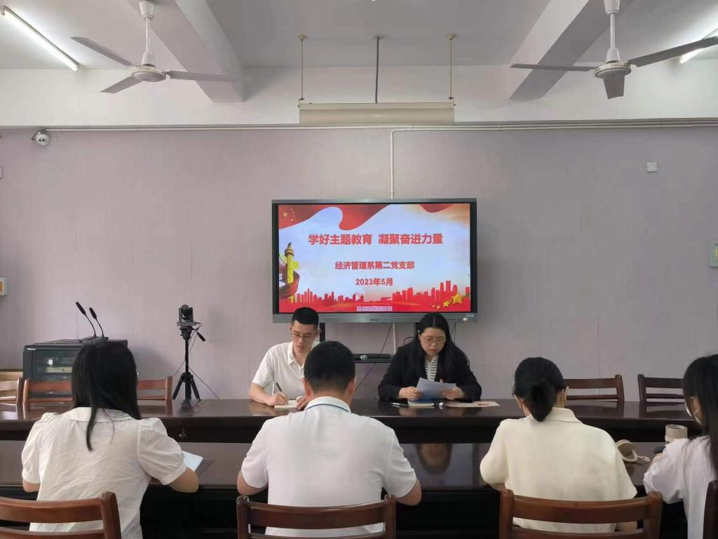 2023年5月12日下午,经济管理系第二党支部召开学习贯彻习近平新时代中国特色社会主义思想主题教育工作会议,会议由支部书记柯桂芳主持。