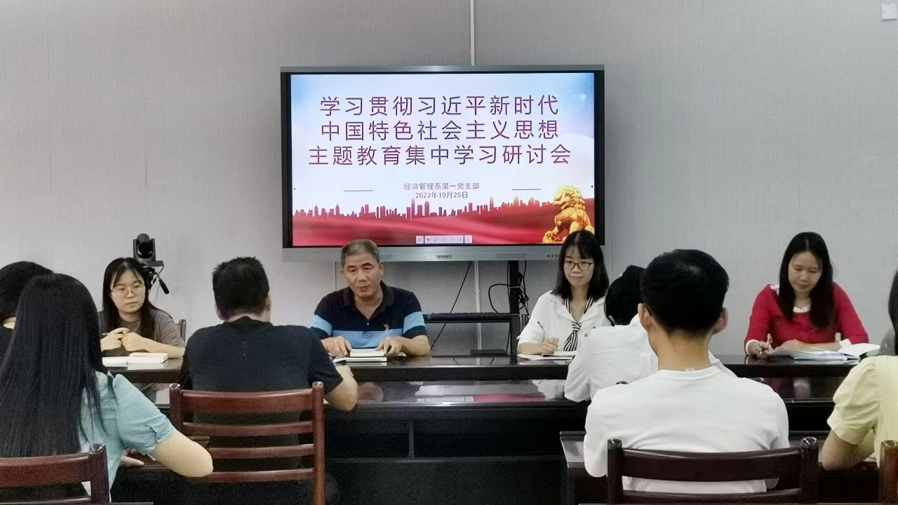 2023年10月25日下午,经济管理系第一党支部在系会议室开展学习贯彻习近平新时代中国特色社会主义思想主题教育集中学习研讨会,会议由支部书记吴雅瑜主持,支部全体党员参会。
